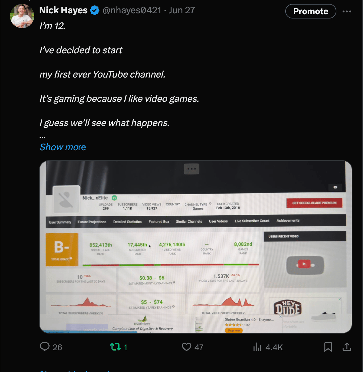 I made this X post a little while ago that started with a story from when I was 12. (8 years ago. Some people thought I was actually 12.)